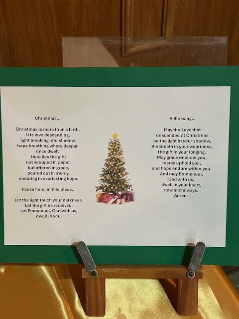 "I can only speak for myself when I say that it can be so easy to get caught up in the busyness of everyday life! Finding a quiet space, away from distractions, to stop and catch my breath with God is sometimes difficult. Whether you find this is the case for you or not, you are invited to "come...be still...and rest" in the reflective prayer space. You are welcome whether it is for a minute or longer." (Anne-Marie who helped develop the idea of the area)