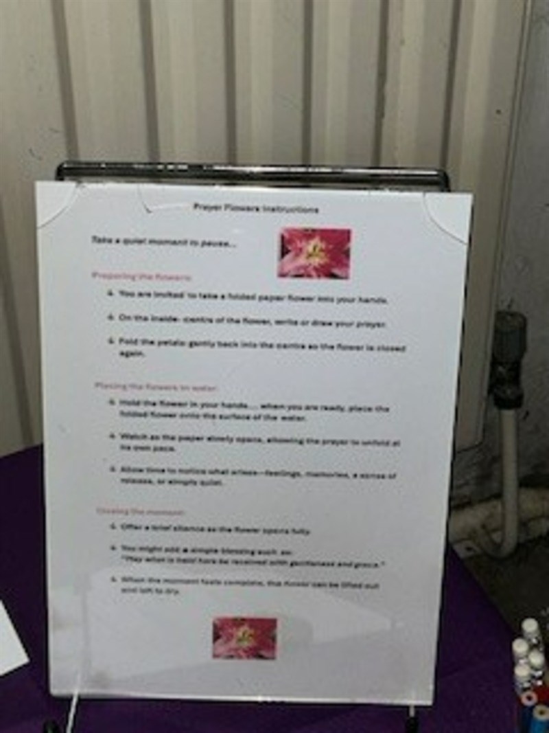 Brother Roger of Taizé (1915-2005) often used this imagery to represent times of dryness, loneliness, or spiritual emptiness, and believed that in these moments, a “flower” of joy, trust, and life can unexpectedly blossom through God’s presence and our own commitment to inner peace. You are invited to reflect and pray in this sacred space. There is the option to write or draw your prayers on floating paper flowers. Please lift your flowers out of the water and leave them to dry before leaving the space. All prayers will be included in the “Healing and Wholeness” service on the 3rd Sunday of the month.