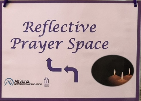 To assist in having a quiet and restful place we have recently developed a themed prayer area in the north aisle.