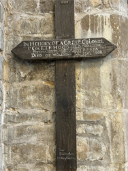 At the entrance to the tower stands the font (above right, please click on it to see a larger version), which dates back to 1849.  It is likely that the original one was by the south door, the traditional place for a font, representing the way we enter the church both physically and sacramentally. There are also two wooden crosses remembering men who gave their lives in the two world wars (below). Please click on them to see larger versions.
