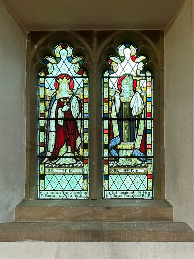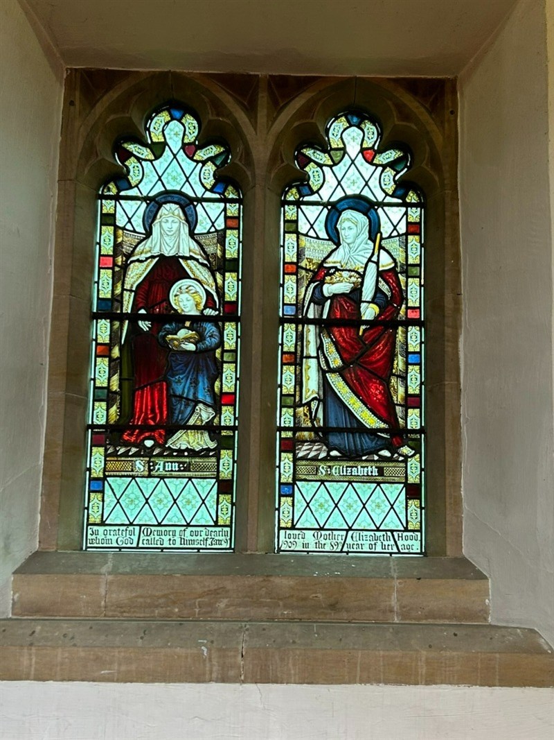 The north aisle of the church was built in the 13th century. The windows are of a later date, including the one of St Ann, which was presented by the Hood family in 1909. Please click on the images below to display larger versions of the north aisle windows.